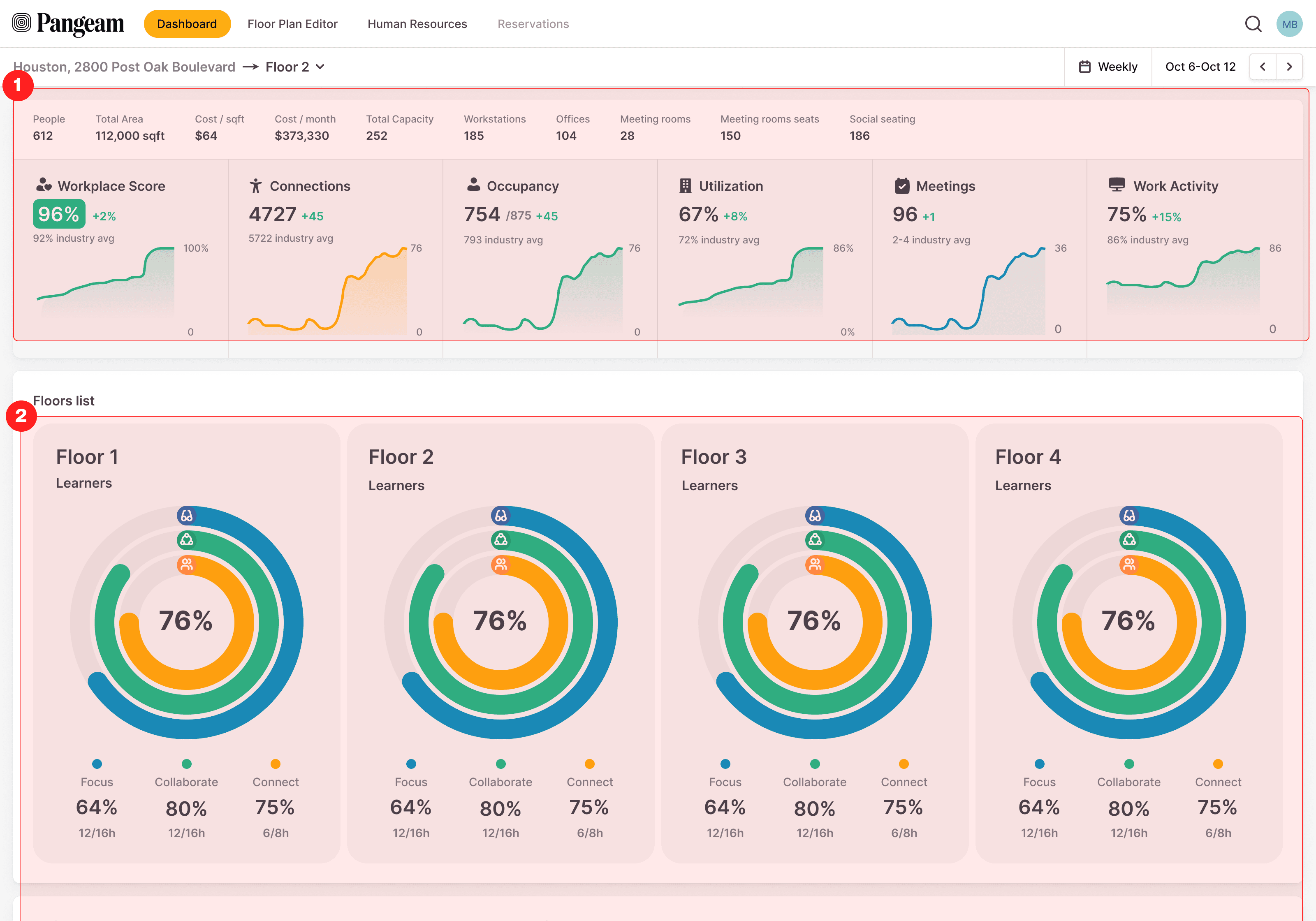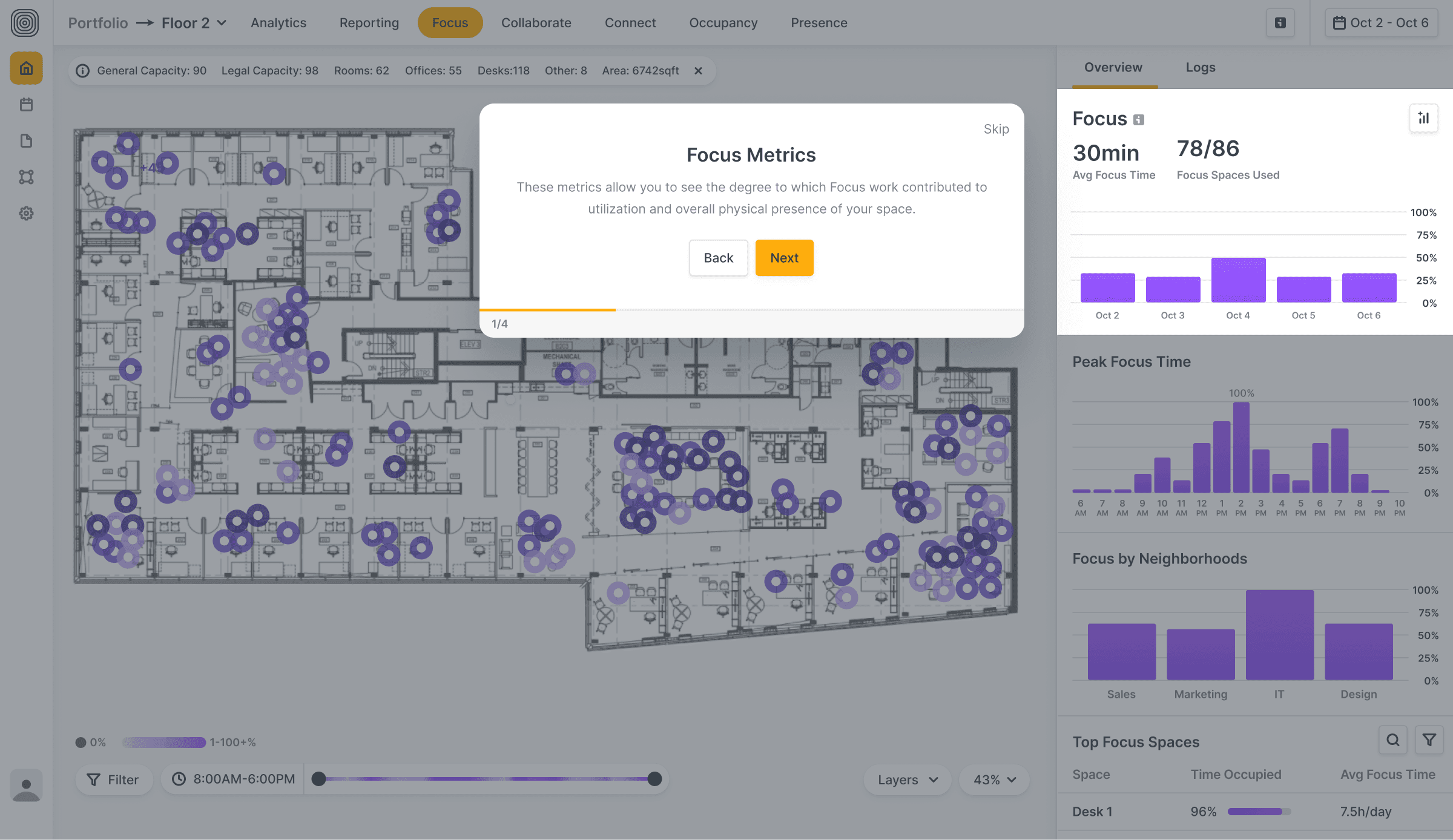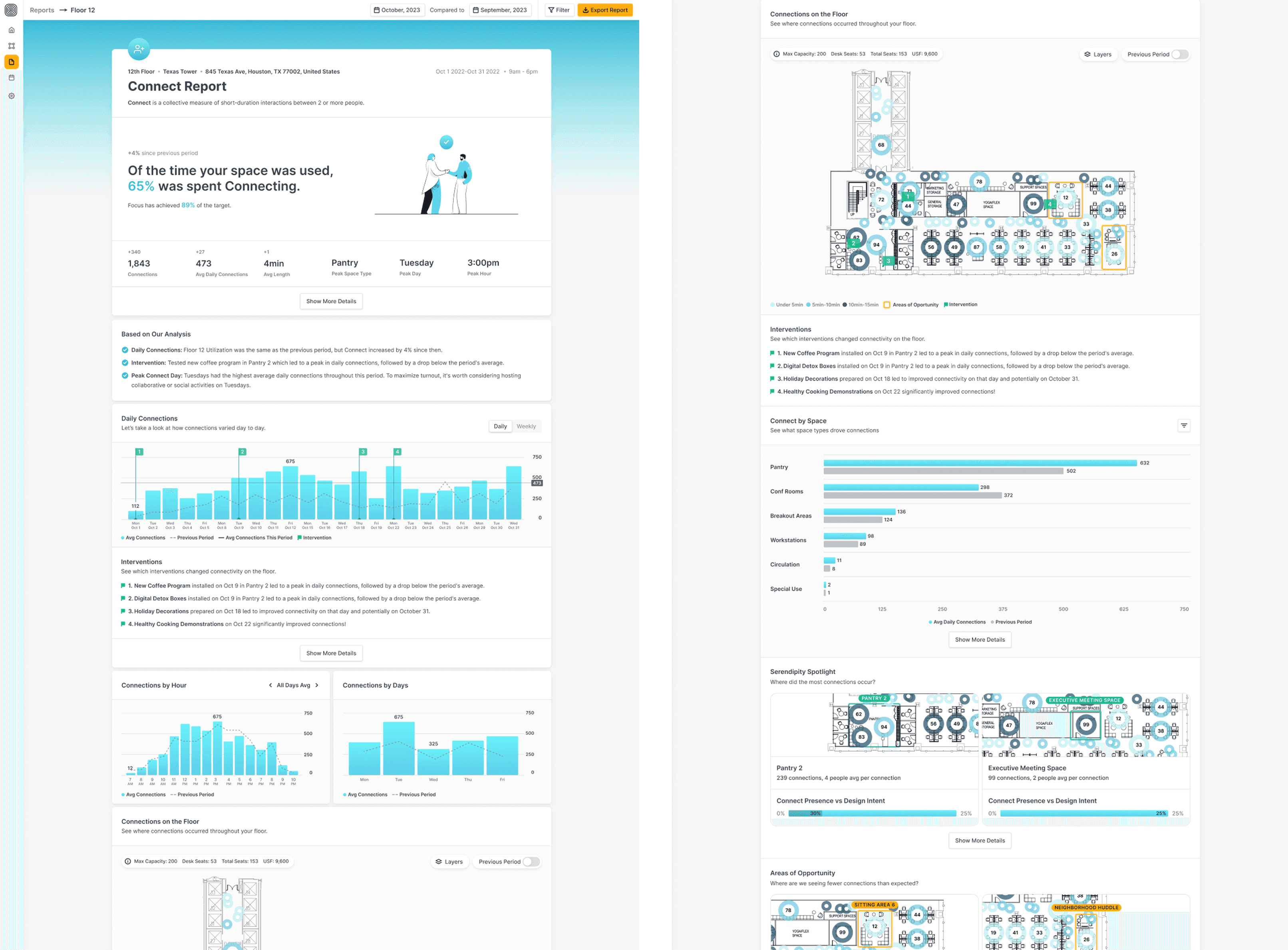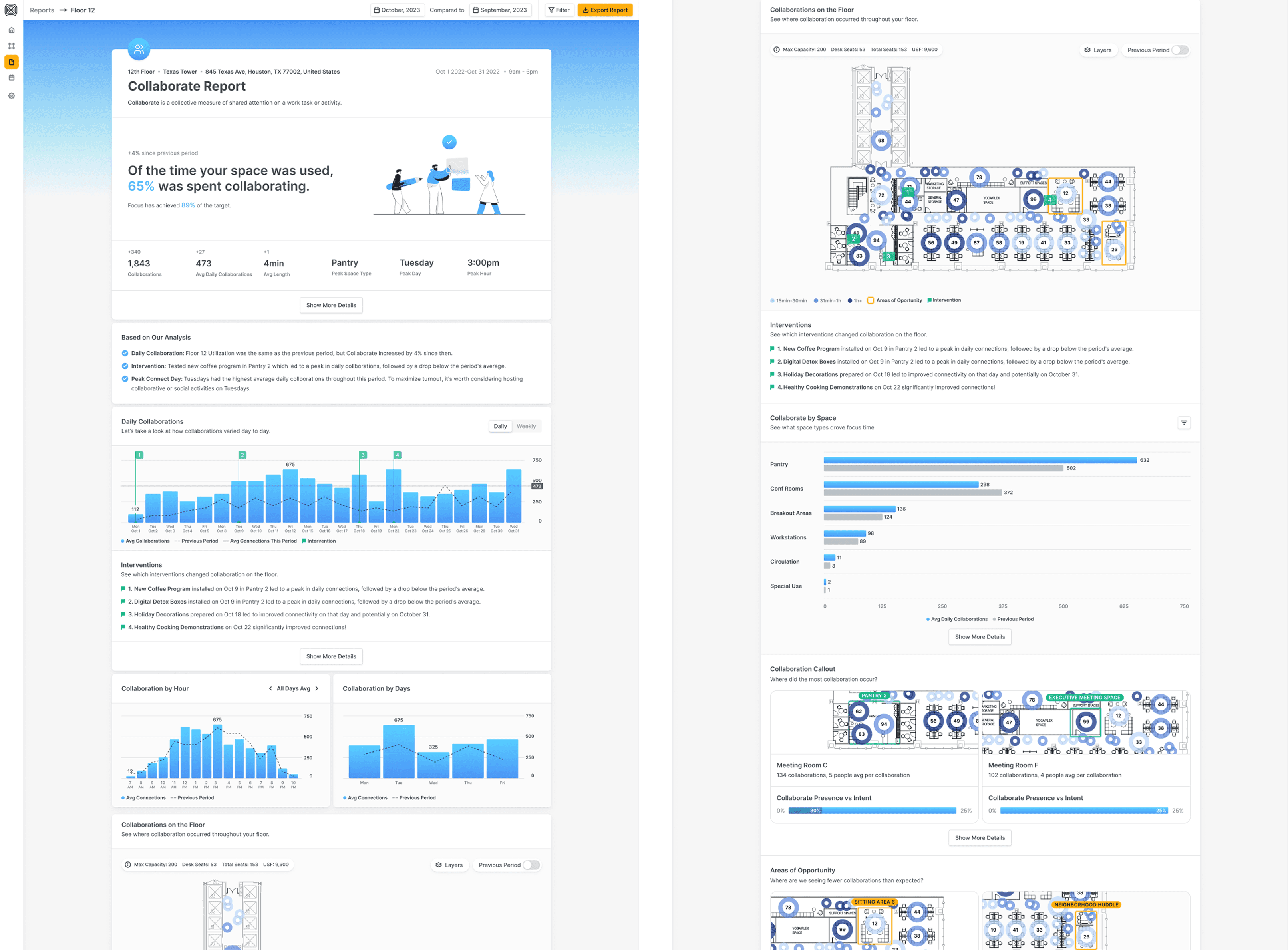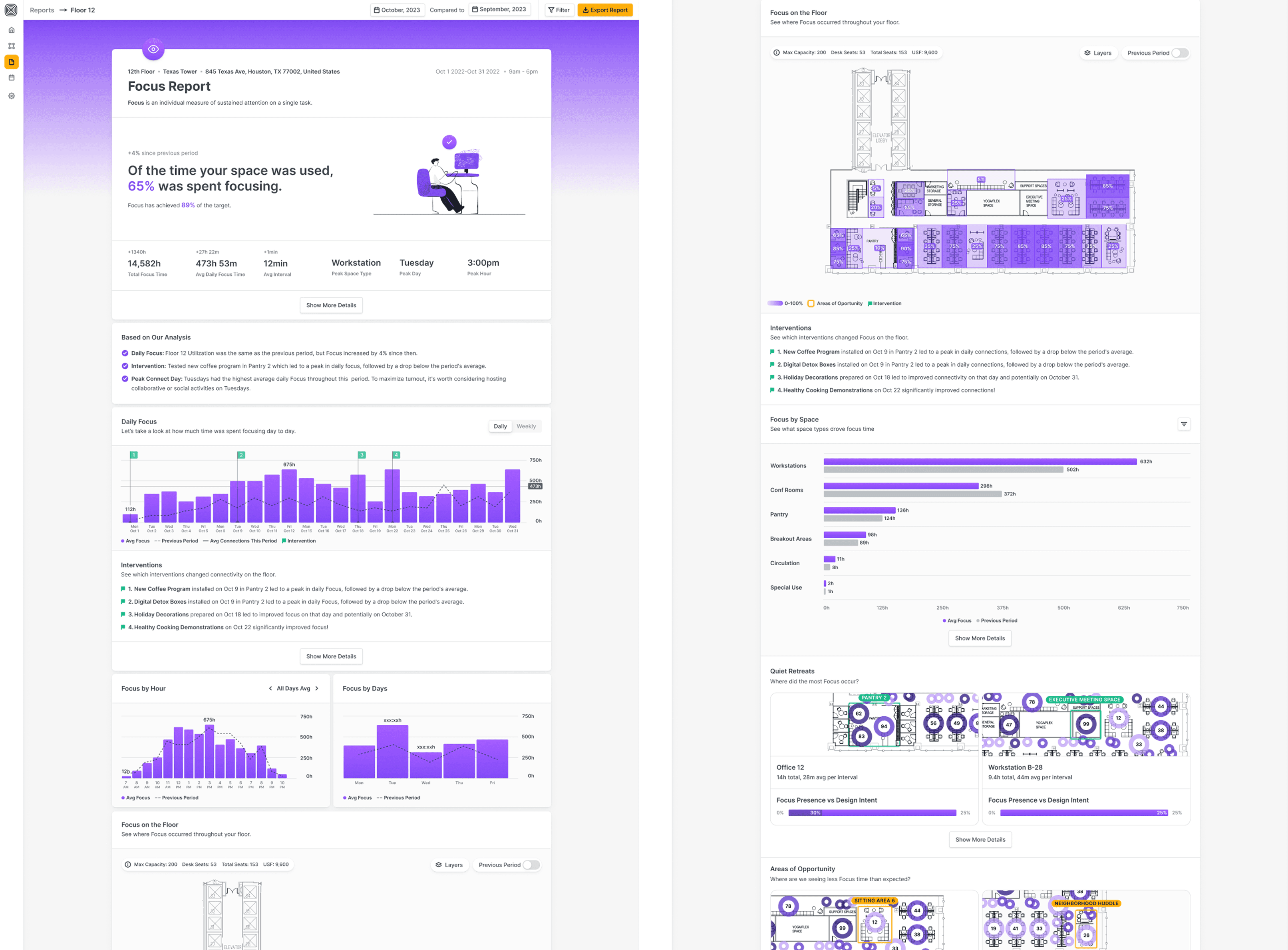 Improved Metrics: We realigned visuals and content to quickly answer: “Is this space working?”