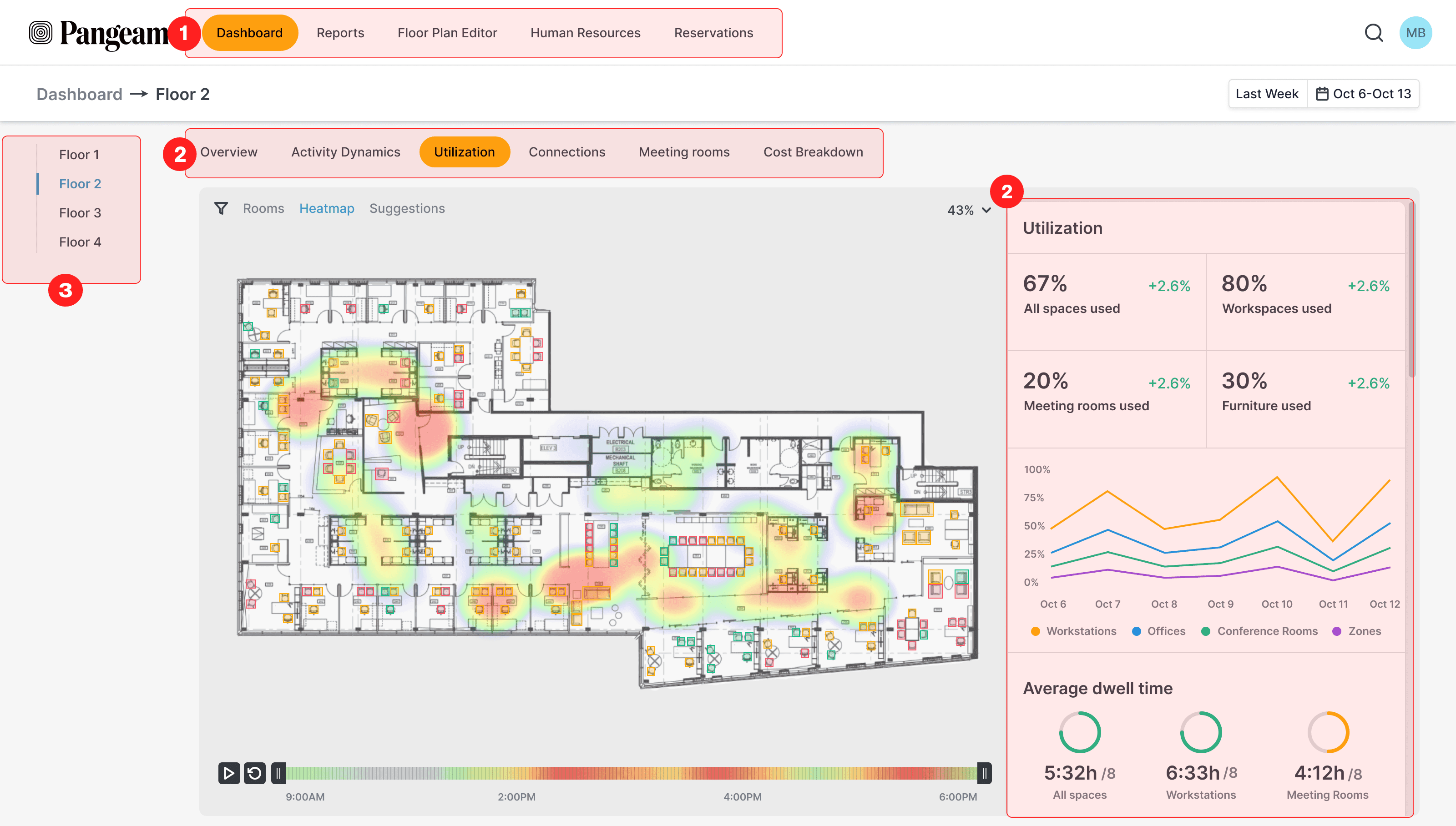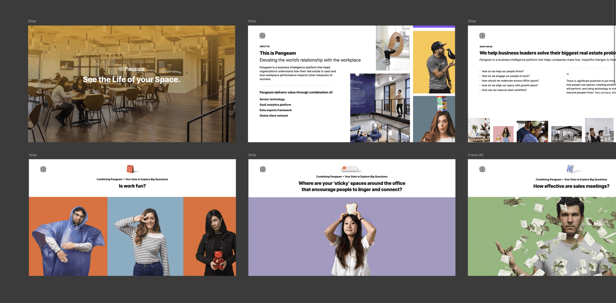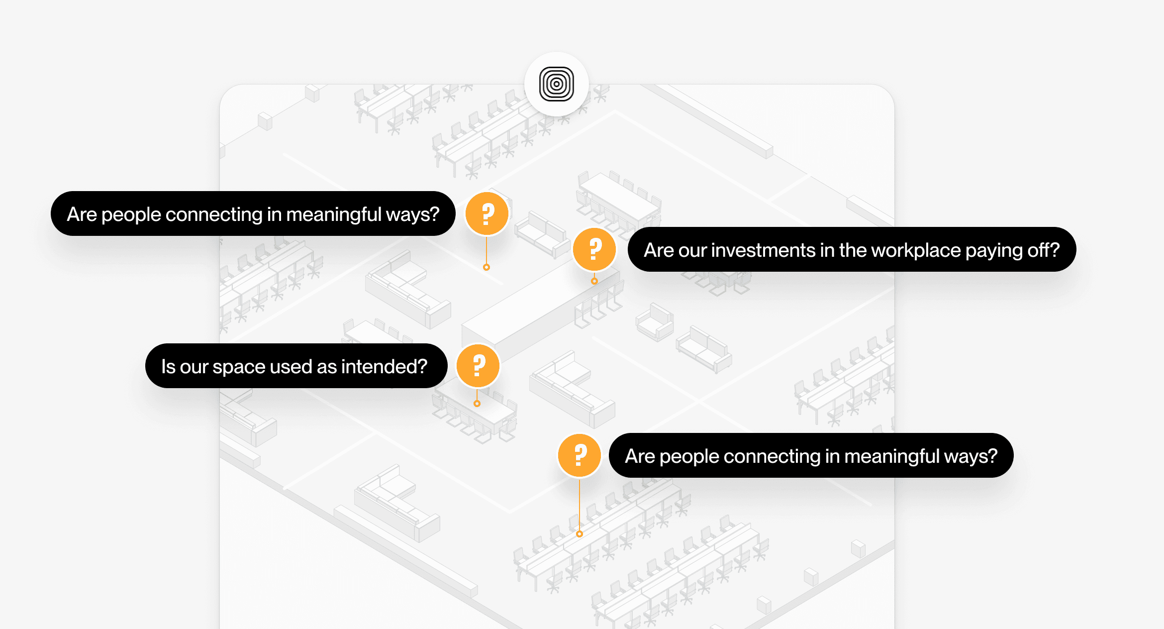Pangeam reveals how office spaces are used, tracks behavioral change, and identifies ways to optimize them, without tracking individuals.